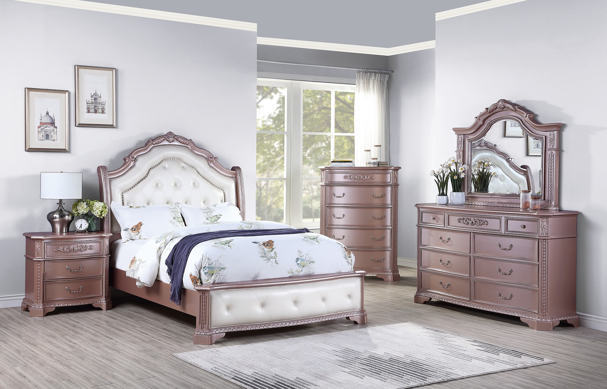 Queen bed, 2 nightstands, dresser, mirror only. When you buy kids' bedroom sets rather than individual pieces you save money and help ensure that all of the items go together since they're from the same furniture collection. Ariston rose gold youth upholstered panel bedroom set. Simple designs antique floor lamp with clear glass shade in rose gold. Find queen size bed sets, including dressers and mirrors, in a variety of styles, colors & decor.